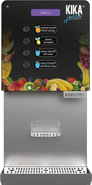 Kika Plus è l’erogatore automatico di succhi di frutta freschi che unisce stile, efficienza e semplicità d’uso. Ideale per uffici, spazi comuni, hospitality e aree break, offre succhi di fritta sempre freschi e piacevoli da gustare grazie a un sistema di refrigerazione performante.